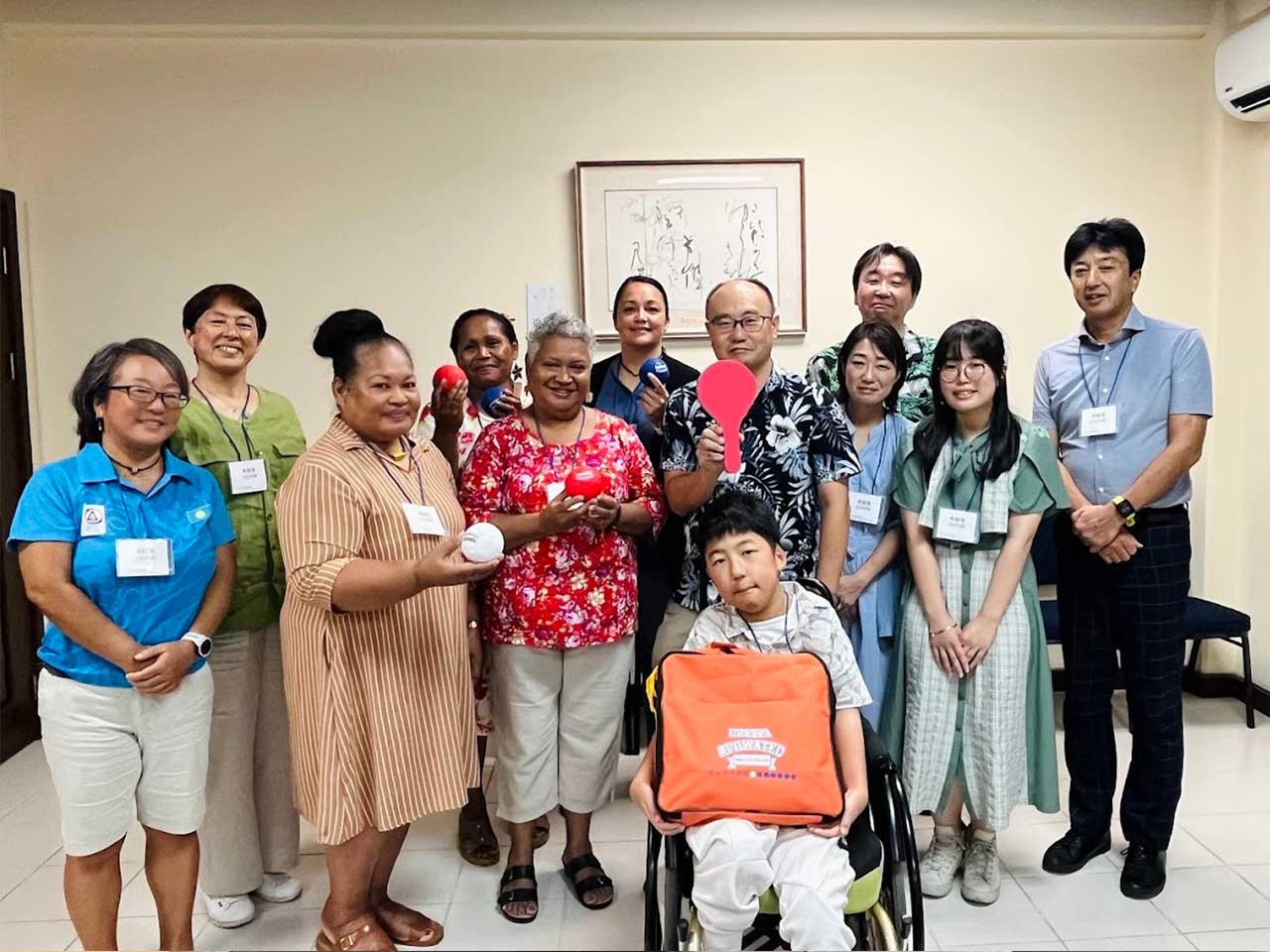 贈呈の引き渡し式がには、パラオ・ペアレント・エンパワード(障害のある子どもや若者を支援する非営利団体)のフランチェスカ・モレイーミセ事務局長が団体を代表して用具を受け取って頂き、団体の事務局長から、「ボッチャ用具が障がいのある子どもや大人に新たな機会を提供する」と感謝の意を頂きました。